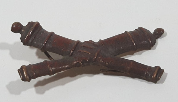 Vintage US Army Military Field Artillery Crossed Cannons 11/16" x 1 1/4" Copper Tone Hat Cap Shoulder Badge Insignia