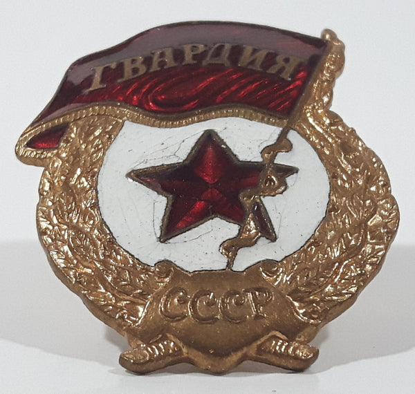 Vintage USSR Soviet Russia CCCP 1 1/4" x 1 7/8" Enamel Metal Cap Hat Guard Badge Military Insignia