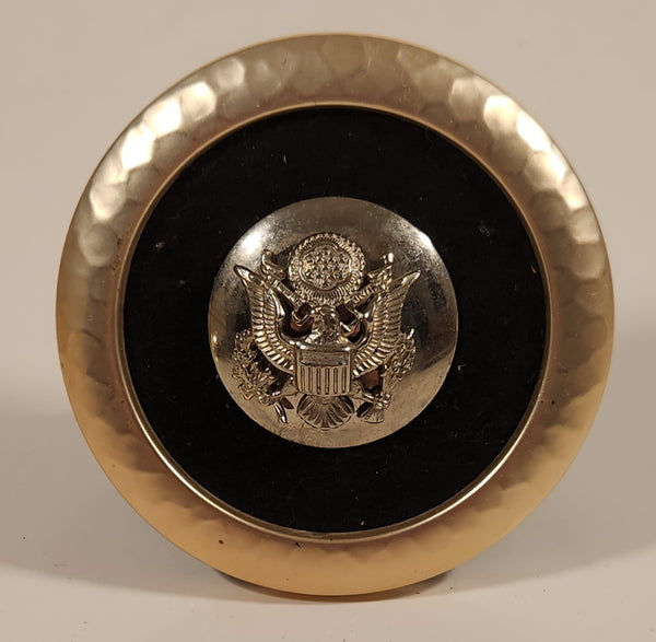Vintage WWII Era US Army Great Seal of The United States Man's Cap Badge Pin On Brass Rimmed Fold Out Felt Stand