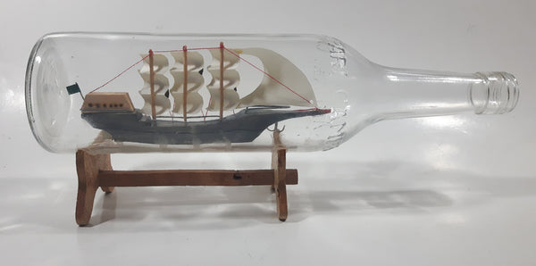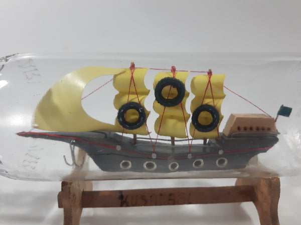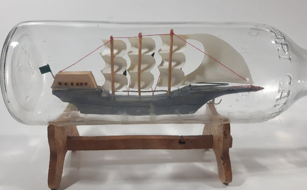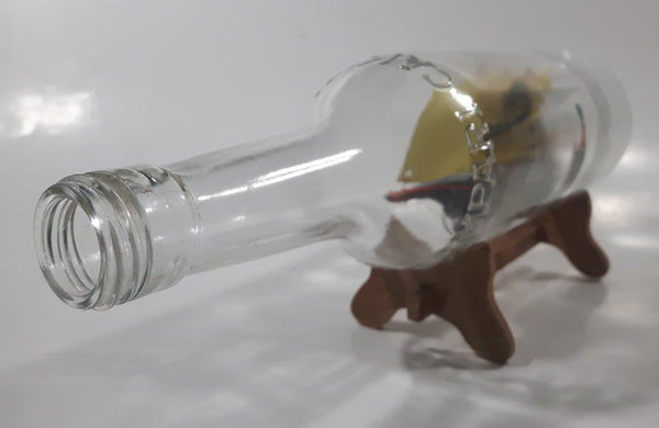 Vintage Turkey Kusadasi Ship in 12" Long Clear Embossed Glass Campari Bottle