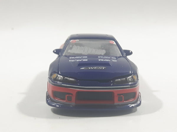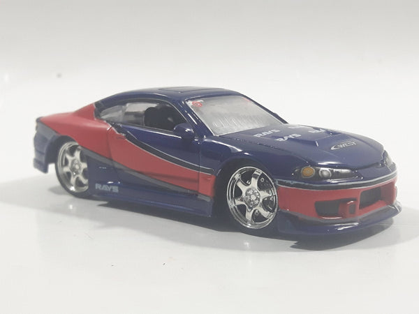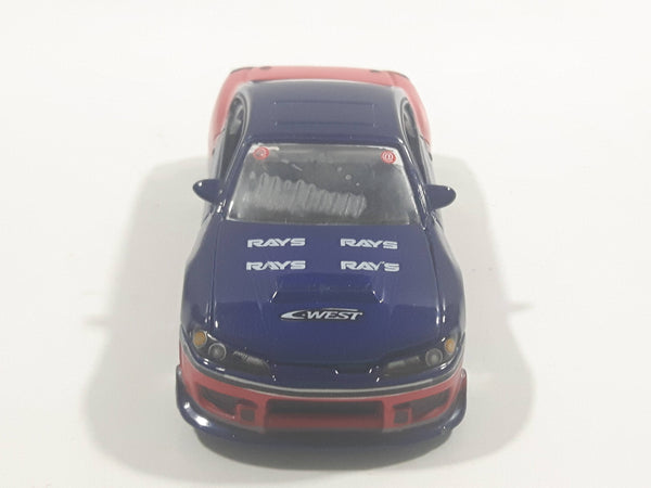 Rare Fast and Furious Tokyo Drift Nissan Silvia "Rays" "West" Dark Blue and Red 1/55 Scale Die Cast Toy Car Vehicle with Rubber Tires Missing the Spoiler
