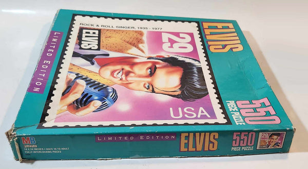 1992 Milton Bradley Elvis Limited Edition Rock & Roll Singer 1935-1977 Stamp Themed 18" x 24" 550 Piece Puzzle