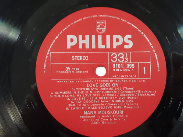 1976 Philips Nana Mouskouri Love Goes On 12" Vinyl Record