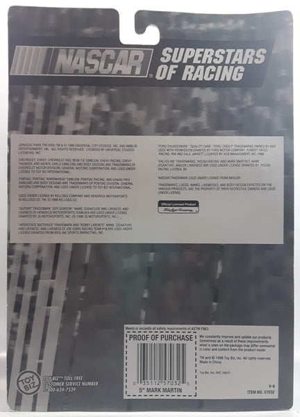 1998 ToyBiz Special Edition NASCAR Superstars Of Racing #6 Mark Martin Valvoline Cummins 5" Tall Toy Race Car Driver Figure with Helmet and Collector Card New in Package