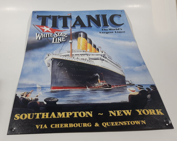 1994 Marine Art Posters White Star Line Titanic The World's Largest Liner Southampton New York Via Cherbourg & Queenstown 11 1/4" x 15 3/4" Tin Metal Sign