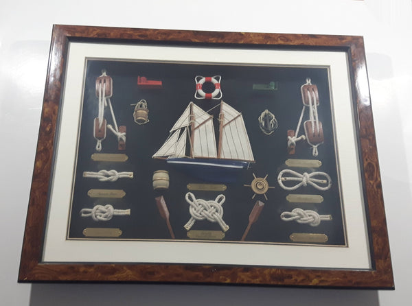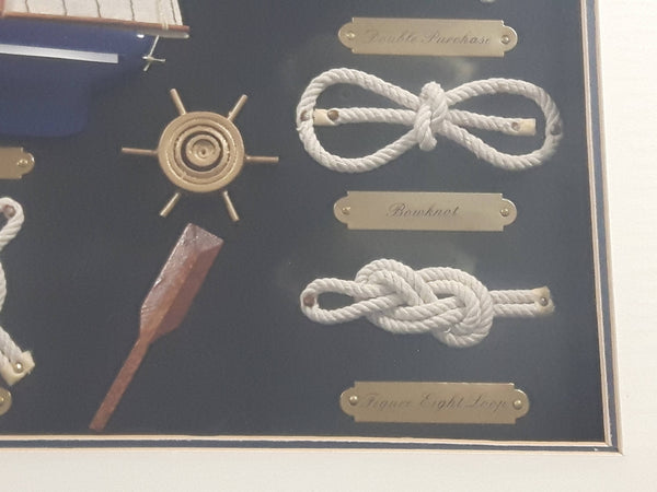 Blue Nose Ship Nautical Knots and Wood Cased Shadow Box 16" x 20"