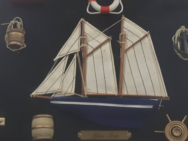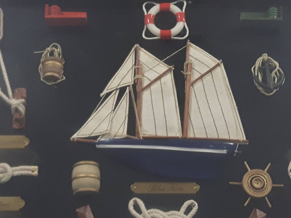 Blue Nose Ship Nautical Knots and Wood Cased Shadow Box 16" x 20"