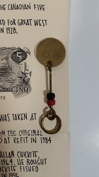 Own a piece of Canadian history. This key chain is made from the original brass controls of the boat featured on the Canadian $5 dollar bill. View photos.
