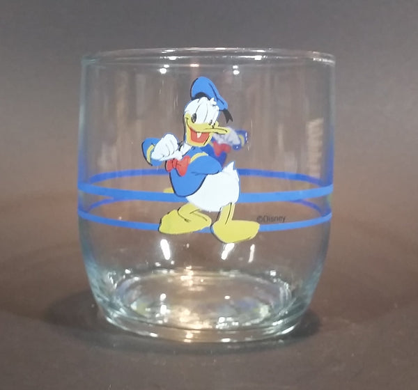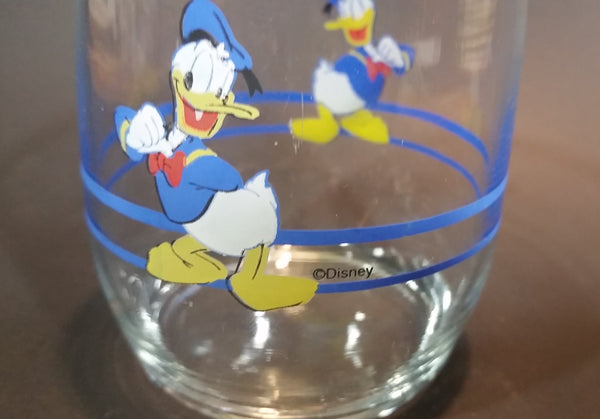 Rare Vintage Donald Duck Disney Blue Ringed Cartoon Character Clear Glass Cup