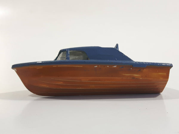 Unknown Brand Fishing Boat Painted Blue and Brown Plastic Toy Watercraft