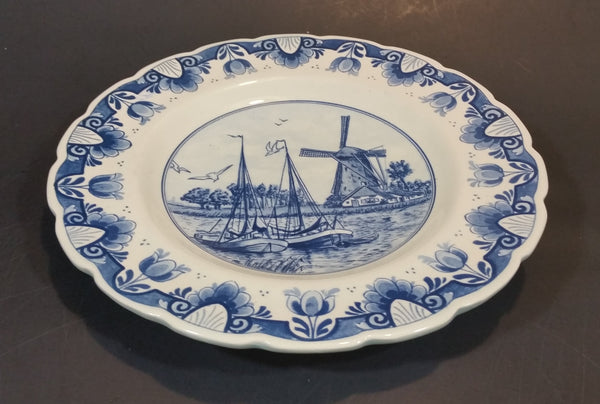 Vintage Delft Blue Sailboats and Windmill Rotterdam Wall Plate