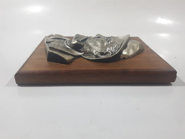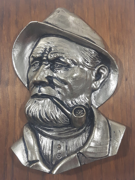 Vintage Old Man Fisherman with Pipe 3D Metal Look Ceramic 6 1/2" x 7 3/4" Wood Wall Plaque