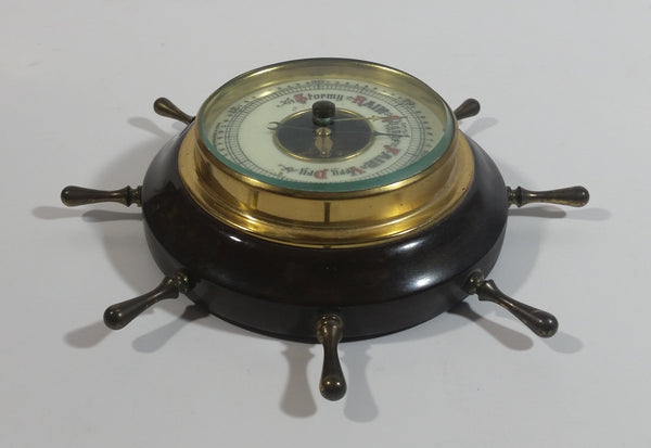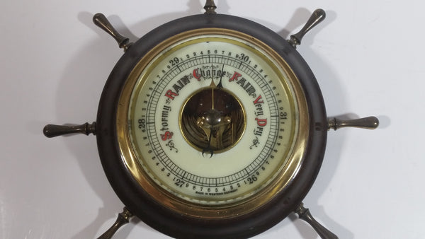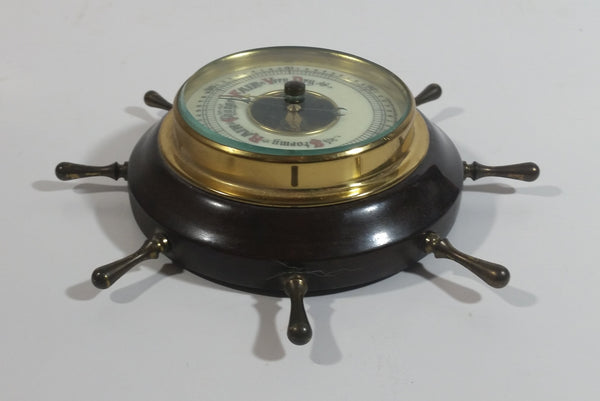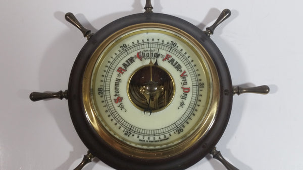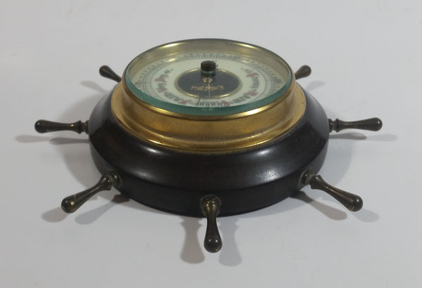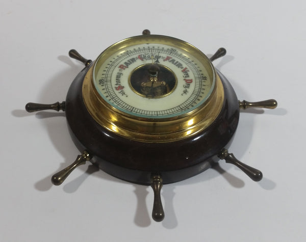 Vintage Ships Wheel Barometer - Wood, Brass, Metal Face - West Germany