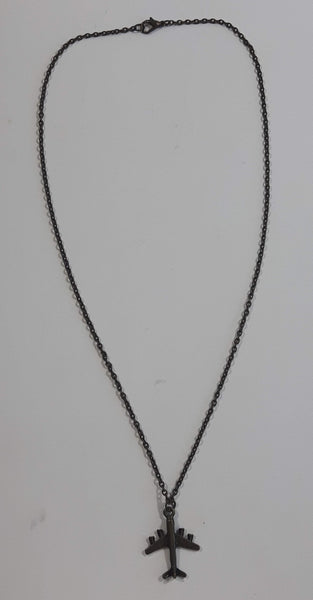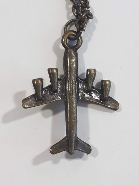 747 Style 4 Engine Air Plane Jet Aircraft Charm 21" Long Dark Copper Tone Metal Necklace