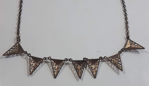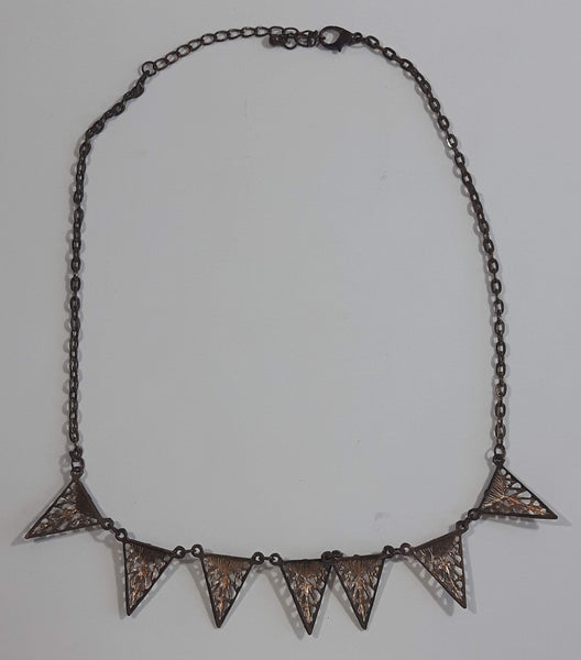 Black Enamel Triangle 20" Long Copper Tone Metal Chain Necklace