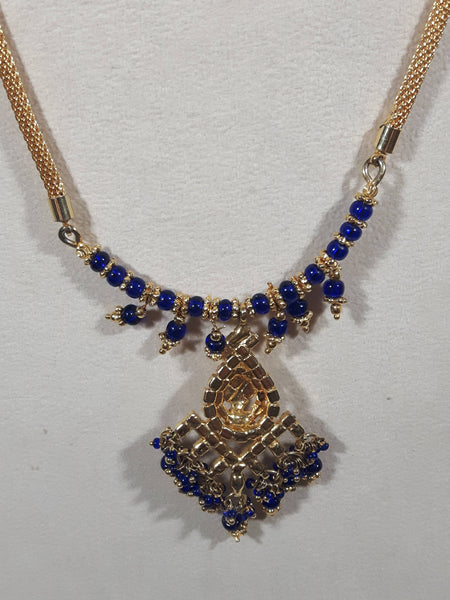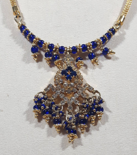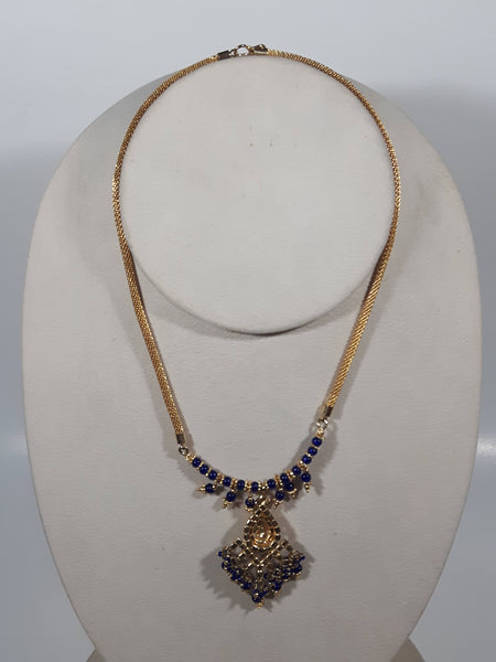Dark Blue and Sparkling Clear Rhinestone Gold Tone Tube Chain 16" Long Metal Necklace