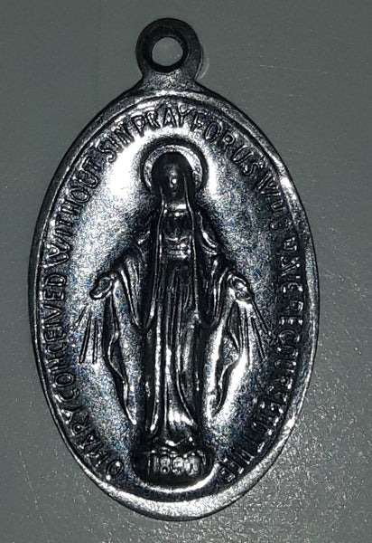 Early 20th Century Saint Catherine Labouré Miraculous Medal of Virgin Mary Rosary Pendant Made in Italy