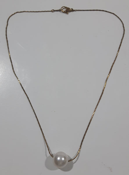 Faux Pearl Gold Tone Metal Chain Necklace 16" Long