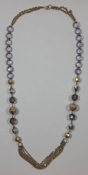 Gold Tone Chain Plastic Amethyst Colored Bead Necklace 28" Long