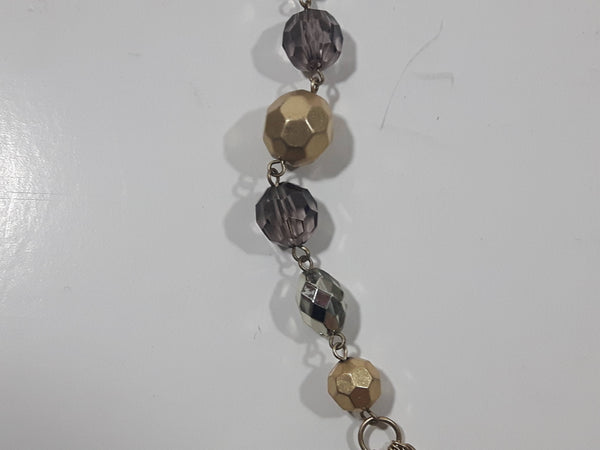 Gold Tone Chain Plastic Amethyst Colored Bead Necklace 28" Long