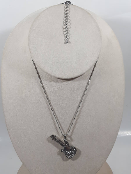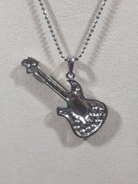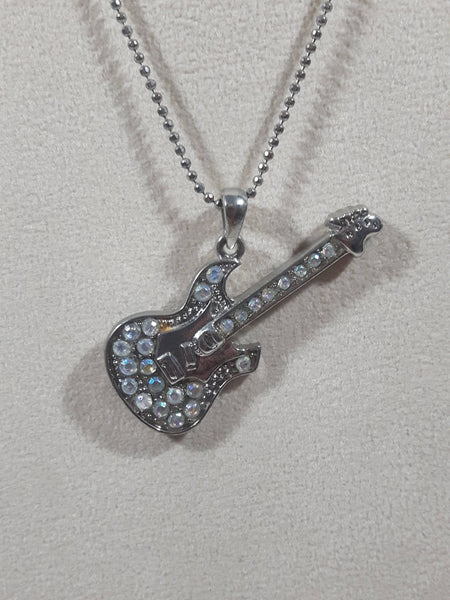 Iridescent Rhinestone Electric Guitar Shape Pendant 18" Long Metal Necklace