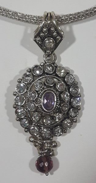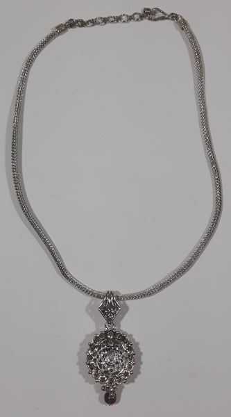 Purple and Clear Rhinestone Dangle Bead Metal Hollow Chain Necklace 14" Long