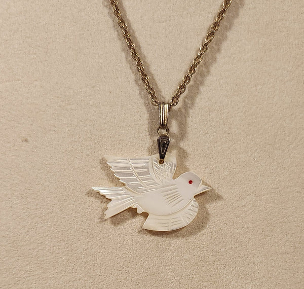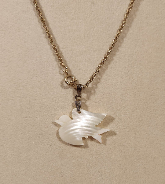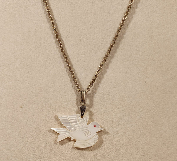 Vintage Mother of Pearl Dove Of Peace Gold Tone Chain Necklace