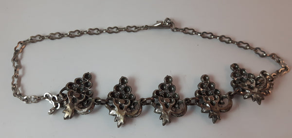 Vintage Silver Tone Pressed Grape Cluster Necklace