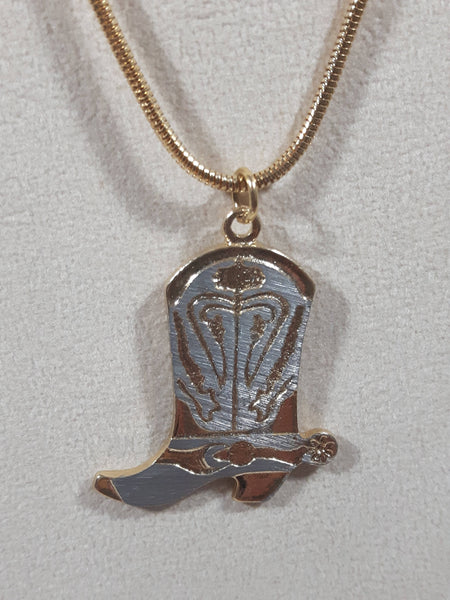 Western Cowboy Boot with Spurs 16" Long Metal Chain Necklace