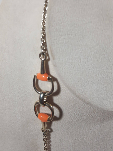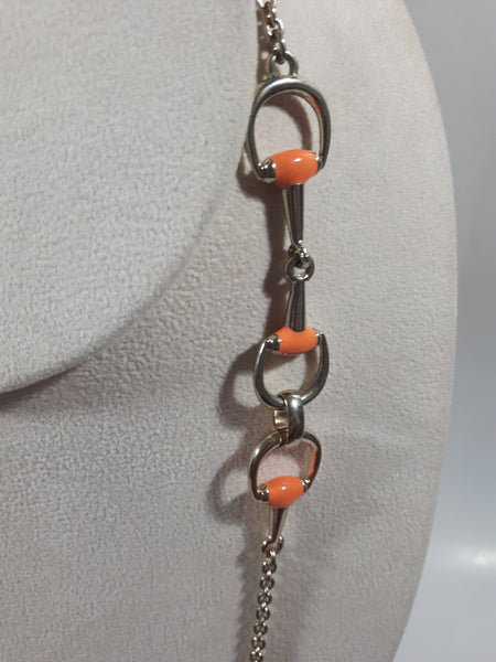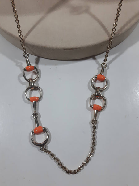 Western Orange and Gold Tone Themed Stirrup 38" Long Metal Chain Necklace