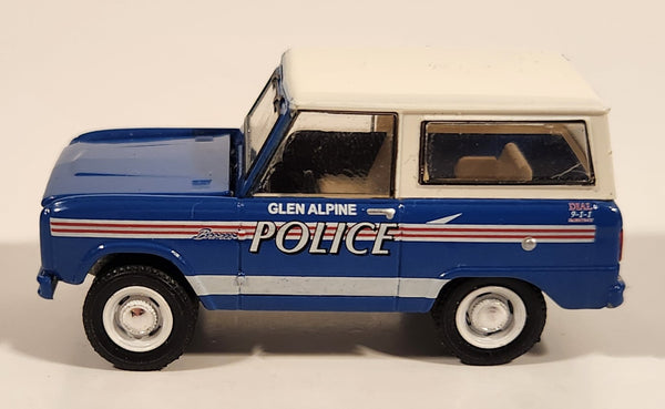 2013 Greenlight Hot Pursuit GL063 1967 Ford Bronco Glen Alpine Police Blue and White Die Cast Toy Car Vehicle with Opening Hood