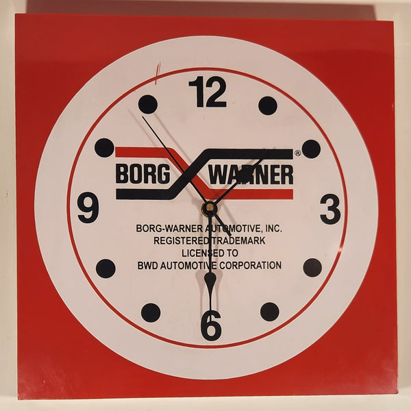 BWD Automotive Corporation Borg-Warner Automotive Red White Black 12 1/4" x 12 1/4" Plastic Advertising Wall Clock