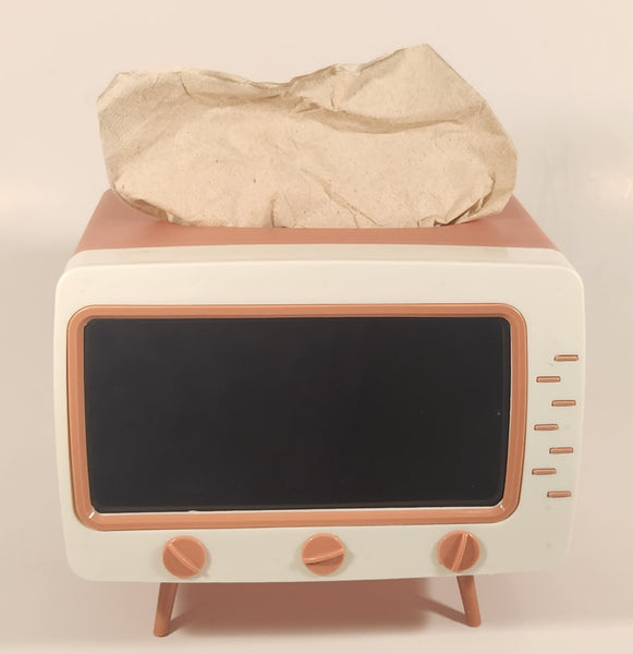 Cell Phone Holder Television Shaped Pink and White Plastic Tissue Napkin Box