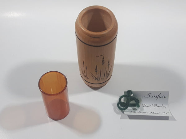 David Barclay Sunfox 5" Tall Wood Plant and Bird Engraved Ornament