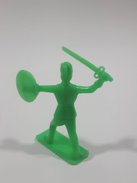 Green Army Military Soldier with Sword and Shield 2 3/8" Tall Plastic Toy Figure