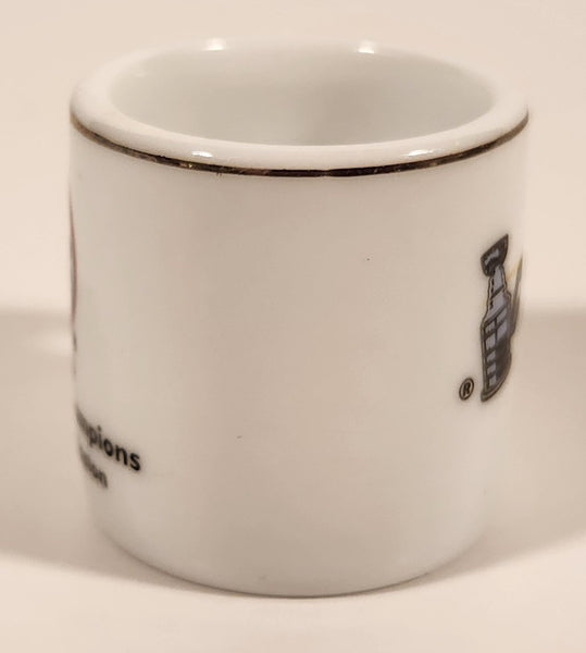 NHL Stanley Cup Crazy Mini Mug Edmonton Oilers 1990 Champs With Opponent & ScoreEdmonton Oilers vs. Boston Bruins4 -11990 Stanley Cup ChampionsExcellent condition. No chips or cracks. As seen in photos. View photos.Height: Approx. 1 1/4"Weight: 23g