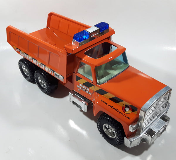 2002 Nylint Highway Department Dump Truck Orange Pressed Steel 17" Long Die Cast Toy Car Vehicle