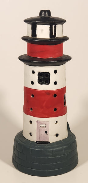 Red and White Striped Lighthouse 7 3/4" Ceramic Candle Holder Lamp Light
