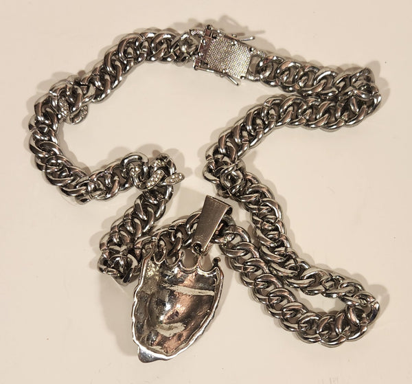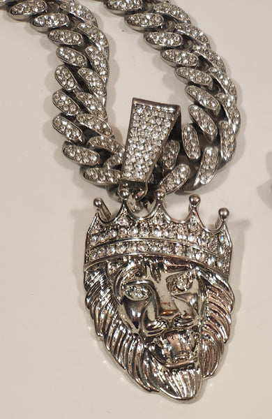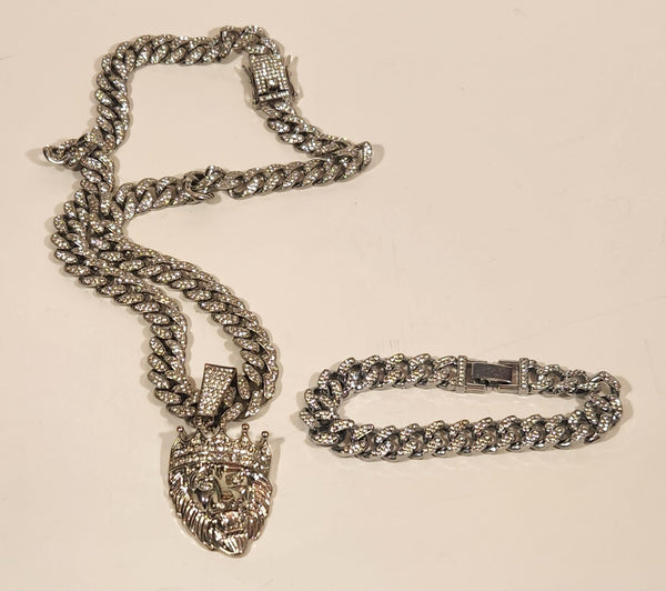 Silver Tone Rhinestone Encrusted Lion King Necklace and Bracelet Set