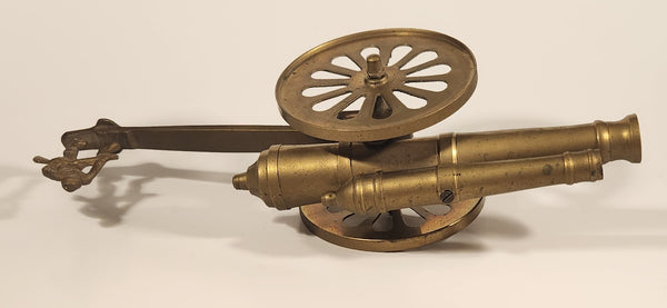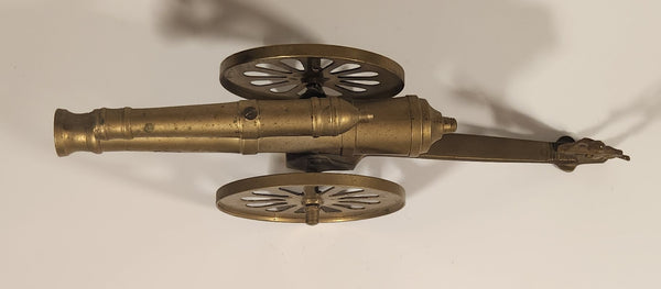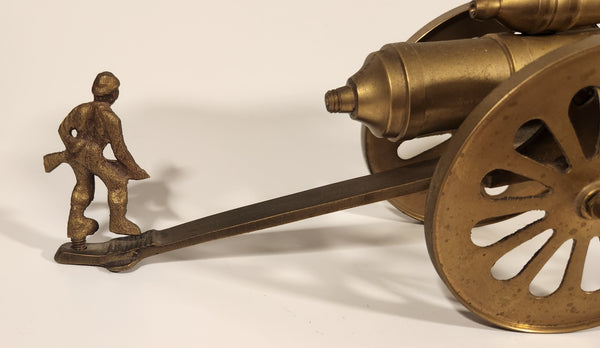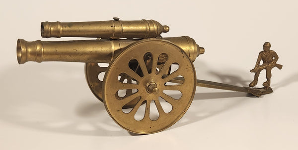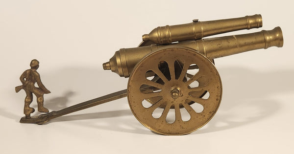 Vintage Civil War Style Double Cannon with Soldier 11 1/4" Brass Metal Sculpture