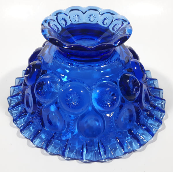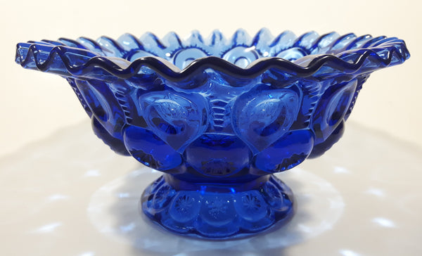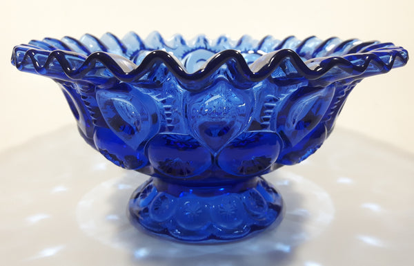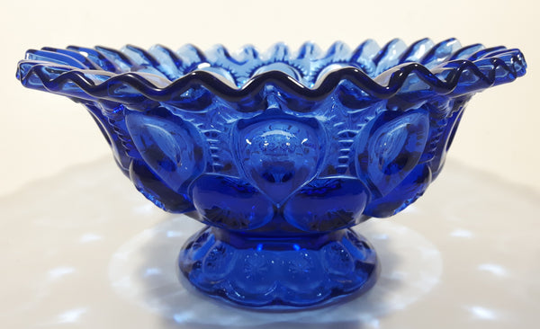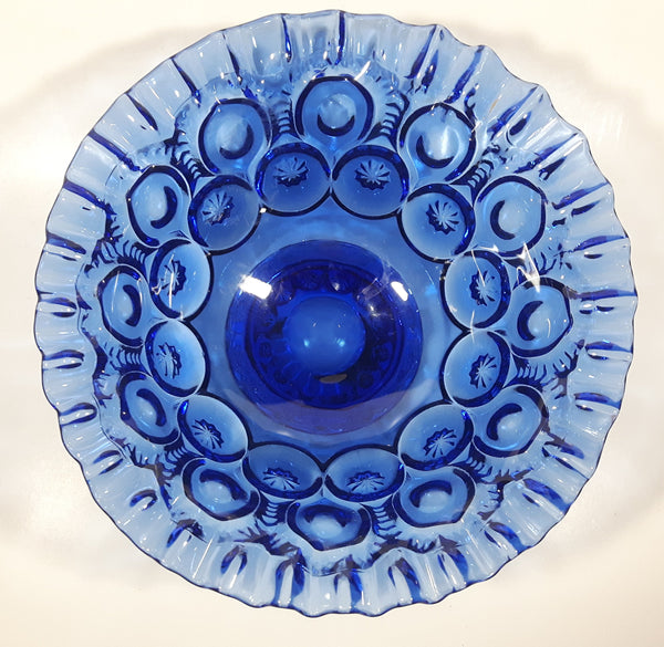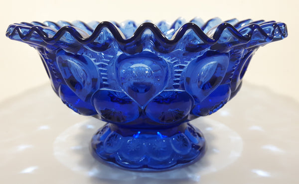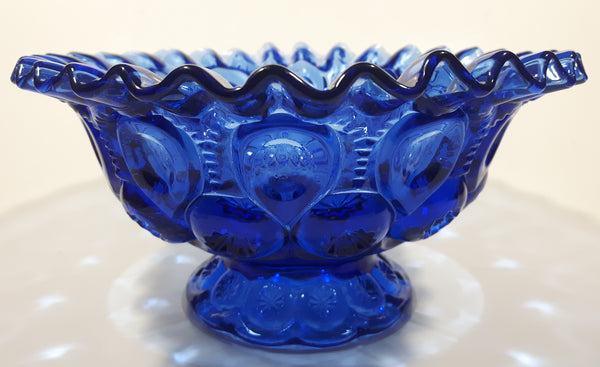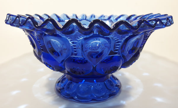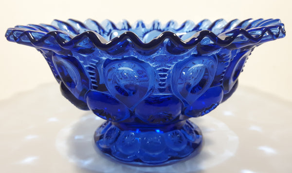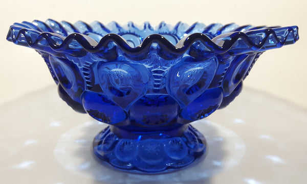 Vintage Mosser / Weishar Ruffled Edge Moons & Stars Pattern 8" Cobalt Blue Glass Pedestal Candy Dish Bowl