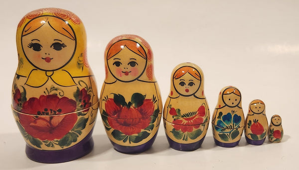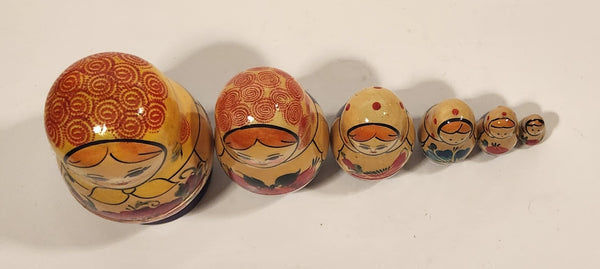 Vintage USSR Russian Matryoshka Hand Painted Wood Nesting Doll Set of 6