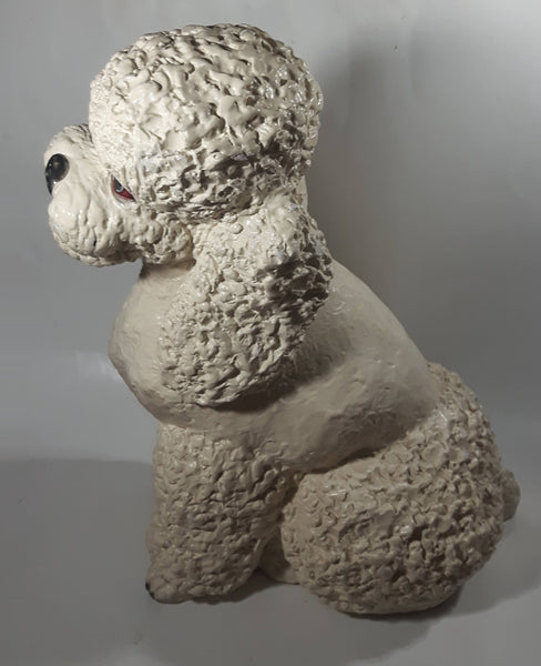 White Poodle Dog Large 15 1/2" Tall Heavy Plaster Pasta Spaghetti Sculpture Statue Cracked Neck