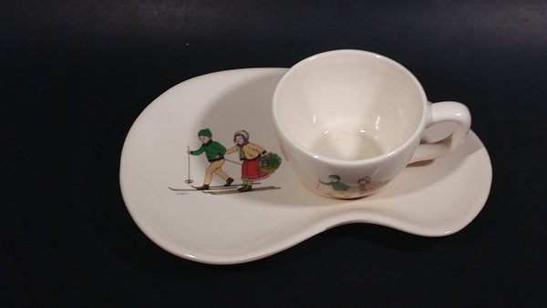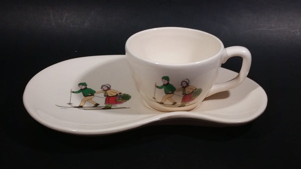Vintage Niderviller Skiing Chalet Boy and Girl on Skis Ceramic Pottery Mug Tea and Toast Cup & Saucer Set