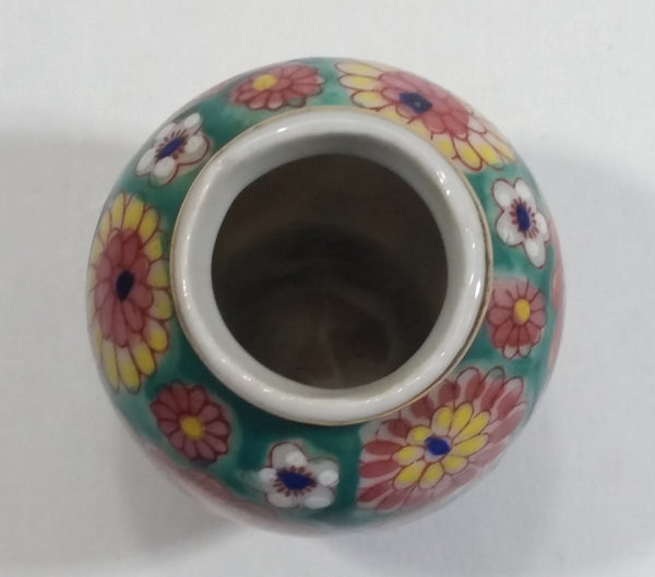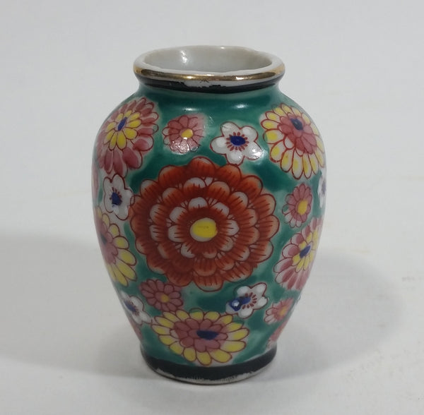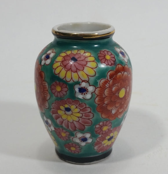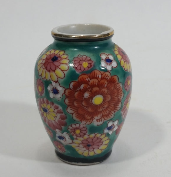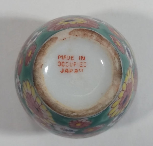 Occupied Japan Miniature Small Porcelain Flower Pattern Green Bud Vase 2 5/8" Tall