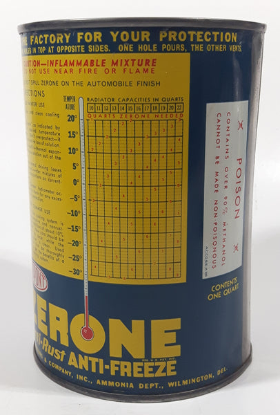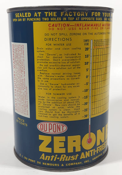 Vintage Dupont Zerone Anti-Rust Anti-Freeze Blue 5 1/2" Tall One Quart Metal Can