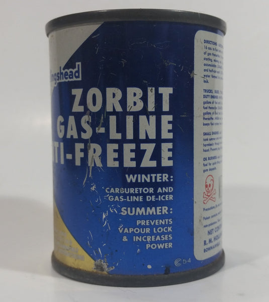 Vintage Whiz Hollingshead Zorbit Gas-Line Anti-Freeze 4 Fl oz. Tin Metal Can Never Opened Still Full - Bowmanville, Ontario