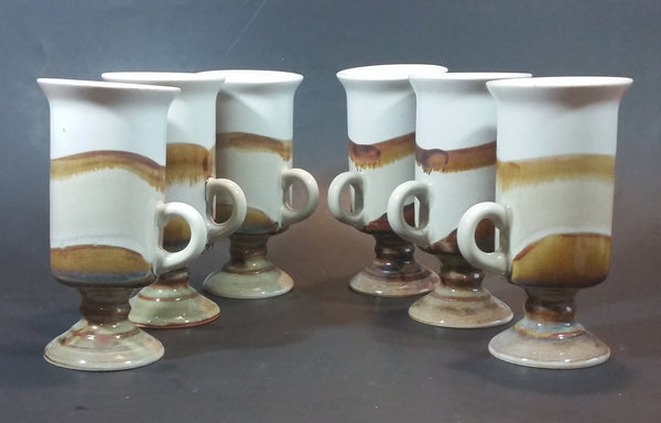 1970s Japanese Hand-painted Otagiri Stoneware Pedestal Coffee Mugs Set of 6