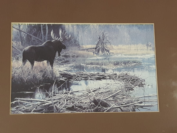 1980 Robert Bateman Autumn Overture - Moose Wildlife Cardboard Cut Out Art Print 13 1/4" x 17 1/4"