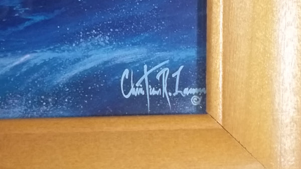 Christian Riese Lassen 'Dawn Of The Dolphins' Gloss Art Print Full Height Wood Framed 9" x "21